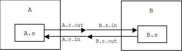 In a connection-oriented protocol processes exchange bytes using stream-mode sockets. A stream-mode socket, s, consists of two streams, an input stream (s.in) and an output stream (s.out). Assume processes A and B want to have a conversation, then A and B will each need a stream-mode socket, A.s and B.s. Furthermore, A.s.out must be connected to B.s.in and B.s.out must be connected to A.s.in: