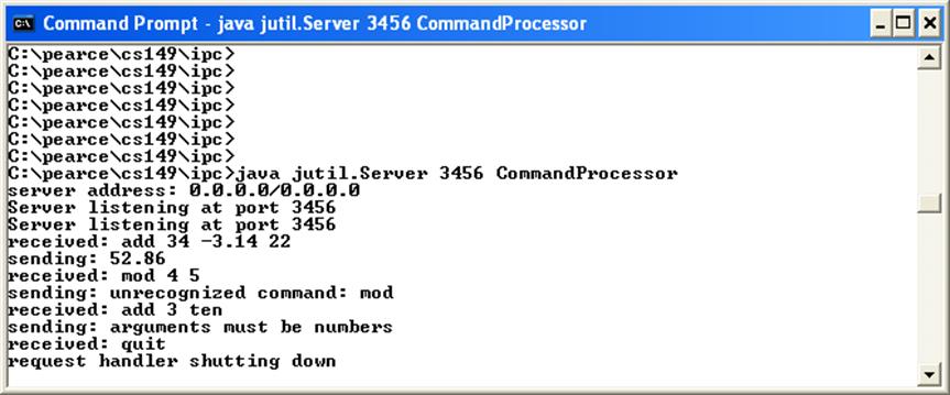 When the accept() method returns, it returns a server-side socket connected to the client-side socket. Next, the server creates a slave thread to correspond with the client. This is necessary to keep the response time of the server reasonable. The slave thread is an instance of the RequestHandler class: