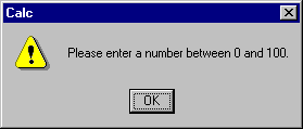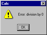 Similar procedures can be used to display arg1 + arg2, arg1 – arg2, and arg1/arg2. However, attempting to divide by 0 produces the warning dialog box:
