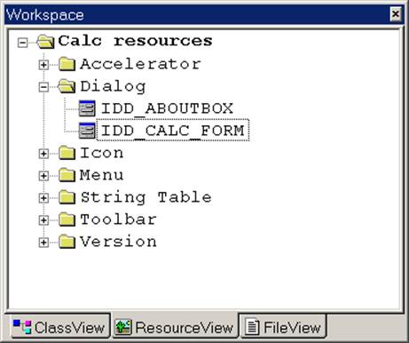 The Dialog Editor is one of many editors included in Visual C++. In fact, Visual C++ has probably anticipated your next move by opening the calculator (such as it is) in a Dialog Editor window. If not, double click [IDD_CALC_FORM] node in the [Workspace]/[Resource View]/[Dialog] tree control.