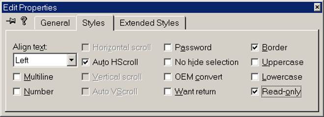 iv. Select the [Read-only] check box on the [Styles] page of the [Result] edit box's property sheet.