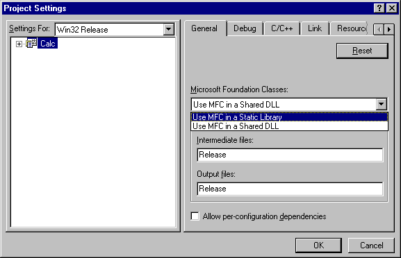 The elaborate MS naming convention is already beginning to reveal itself. A typical class name starts with the letter "C", standing for "class", followed by the name of the application, "Calc", followed by the nick name of the base class. MFC programming conventions are described in the Backgrounders/Visual Tools/MS Visual C++/MFC Development Guidelines volume of the MSDN library, which includes a section on "Hungarian Notation", MFC's naming convention. For example, the prefix of an MFC member variables has the form m_xxx, where xxx indicates the variable's type and content. Thus, m_nLength holds an integer representing a length, m_chResponse holds a character representing the response to a question, and m_lpszName holds a long pointer to a zero-terminated C string representing a name. In this book we avoid using Hungarian Notation unless forced upon us by the framework.