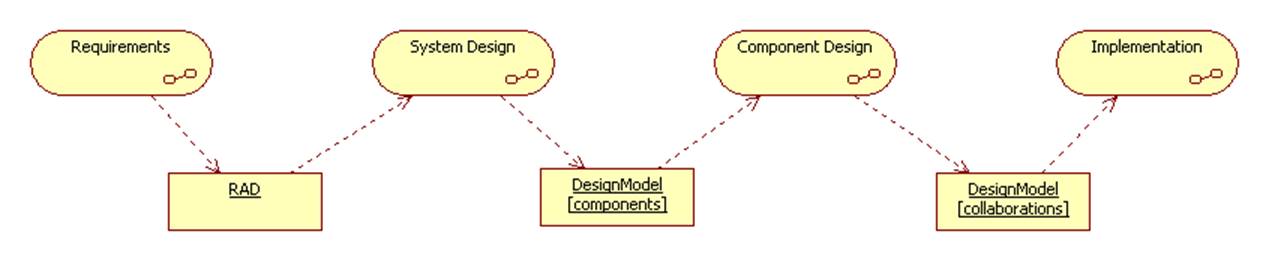 The input to the design process is the analysis model, which is the output of the Requirements Analysis Process and usually takes the form of a requirements analysis document or RAD: