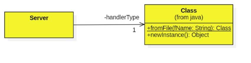The reflection strategy equips the server with an instance of Class representing the type of request handler to create: